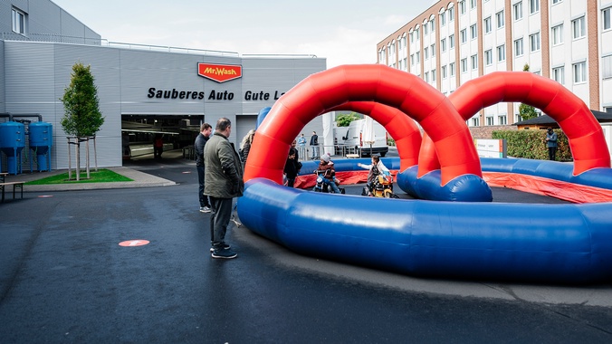 Das Mr. Wash-Team erhält neben einem neu gestalteten Sozialraum ein gemütliches Holzhaus im Freigelände. Dort können die Mitarbeitenden die Pause verbringen und einen Moment verschnaufen. Für die Kundschaft und die Kolleginnen und Kollegen von Mr. Wash wurden die WC-Anlagen gleichermaßen modernisiert.