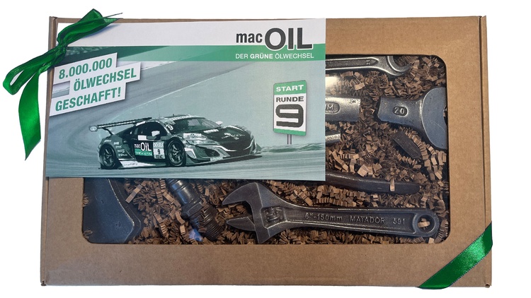 Ölwechsel ist Teamarbeit – die Kollegen in den Ölwechselstationen können sich aufeinander verlassen und arbeiten täglich Hand in Hand zusammen. Jedes Team und jeder einzelne Mitarbeiter haben ihren Beitrag zu der beeindruckenden Millionenmarke geleistet. Zur Freude aller gab es daher zum Meilenstein Schokolade in Werkzeugform und den Dank des macOIL Geschäftsführers Cornelis van de Pol. Und die Teams arbeiten schon am 9.000.000-millionsten Ölwechsel…