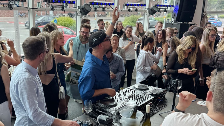 Die Gäste ließen sich an der Hammer Straße von Musik berieseln, statt von Wasser streckten die Hände zum Takt der Bässe in die Luft – sie waren begeistert von der exklusiven Veranstaltung!
