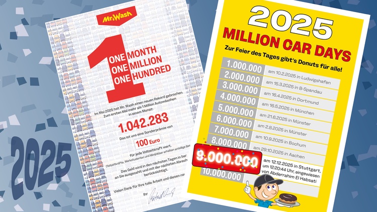 Hinter uns liegt ein Jahr mit großartigen Ergebnissen sowie vielen kleinen und großen Rekorden. Bereits im Mai durften wir einen besonderen Meilenstein feiern: Zum ersten Mal wurden innerhalb eines Monats über 1.000.000 Fahrzeuge bei Mr. Wash gewaschen. Dieser Rekord wurde an unseren Anlagen gebührend gefeiert.