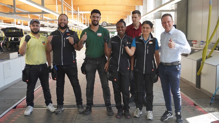 Aktuell sorgen 72 Mitarbeitende für ein sauberes Auto und gute Laune. Elf davon sind in der Außenwäsche beschäftigt, 42 in der Innenreinigung und 19 arbeiten in der Tankstelle. Zusätzlich sind zwölf Kollegen in der macOIL Ölwechselstation beschäftigt.