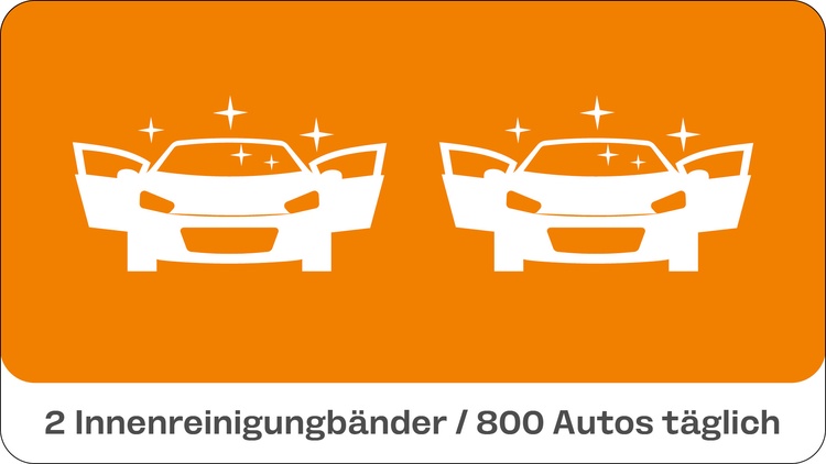 Ergänzt wird das Angebot durch sechs Handwax-Plätze, an denen unsere Mitarbeitenden in nur 12 Minuten bis zu 140 Autos am Tag in neuem Glanz erstrahlen lassen.