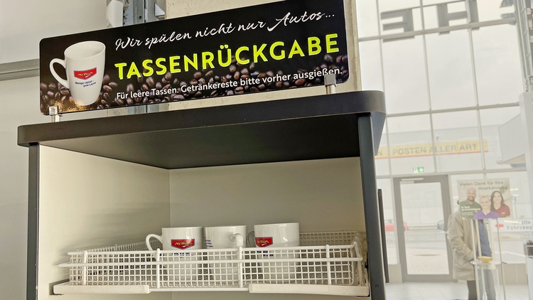 Der Kaffee muss innerhalb von zehn Minuten trinkbar sein, darf weder zu bitter noch zu heiß werden. Danach wurde das Format der neuen Porzellan-Tassen definiert, schließlich soll niemand beim Kaffeegenuss unter Zeitdruck geraten. Alle Mr. Wash-Niederlassungen werden um Spülmaschinen erweitert. Die Maschine ein- und auszuräumen, bedeutet zwar zusätzliche Arbeit für die Teams vor Ort, ersetzt aber die Entsorgung des Müllbergs.