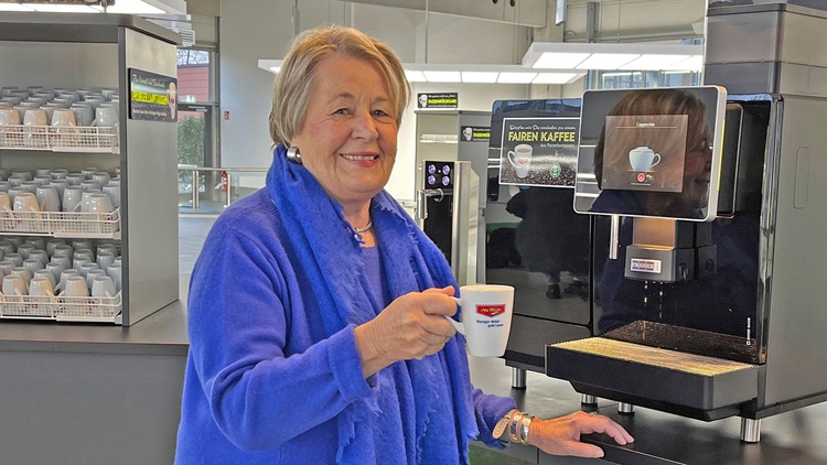 "Bisher habe ich immer Capuccino getrunken, wenn ich bei Mr. Wash war", sagt Gertraud Schaffner, Kundin in Mülheim an der Ruhr. "Aber seit ich zufällig mal den Kakao gezogen habe, kann ich mich manchmal gar nicht entscheiden, so lecker ist der!"